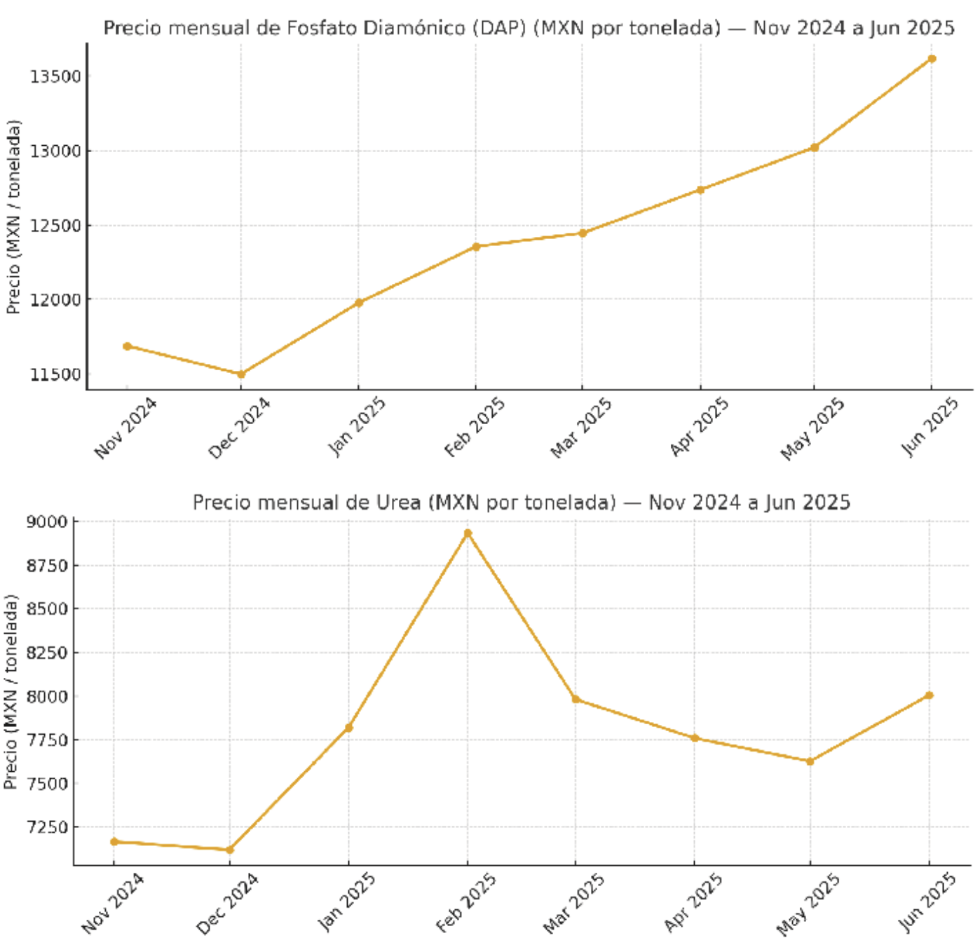 A nivel internacional, el precio de fertilizantes como la urea, el DAP, el MAP y el potasio ha mostrado un incremento significativo desde finales de 2023. Aunque la volatilidad sigue presente, la tendencia general es al alza debido a los siguientes factores: